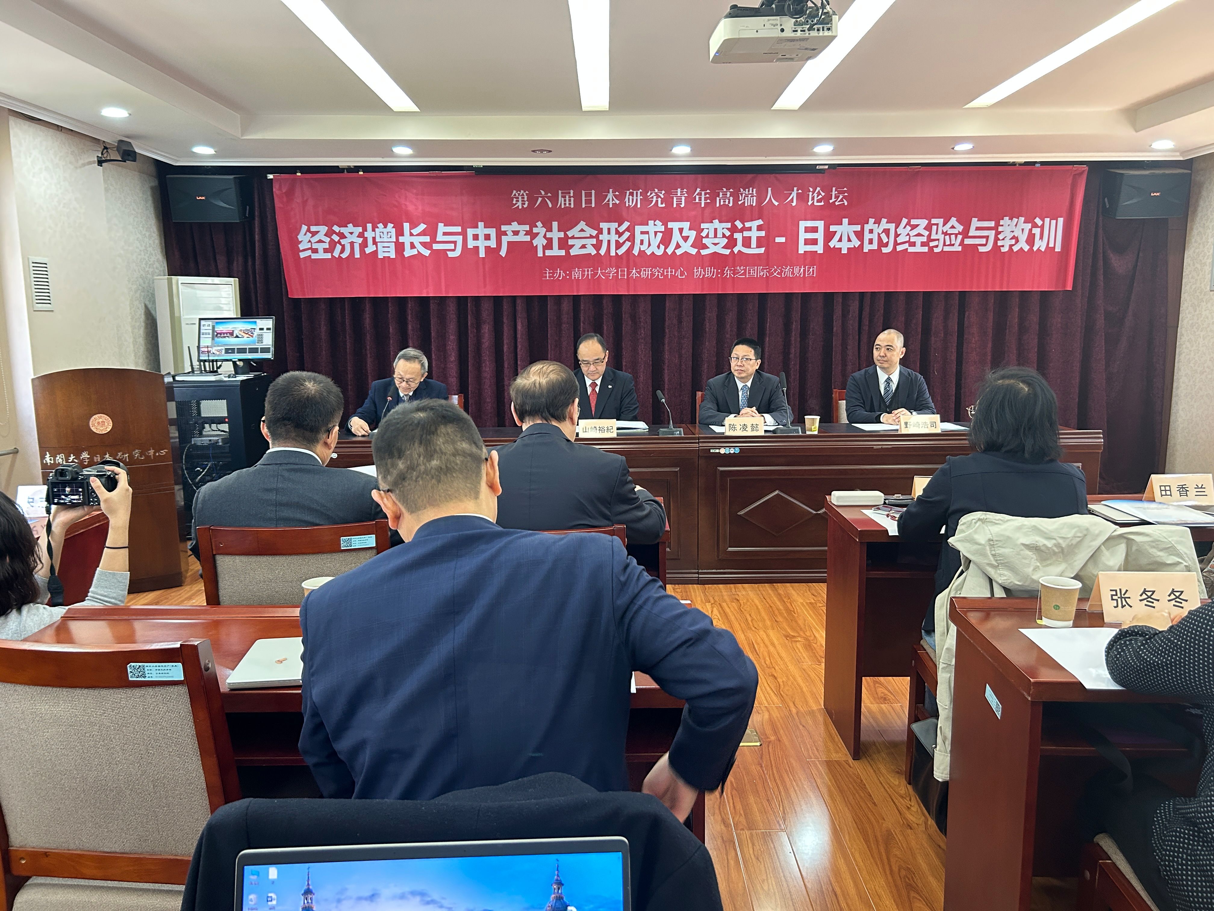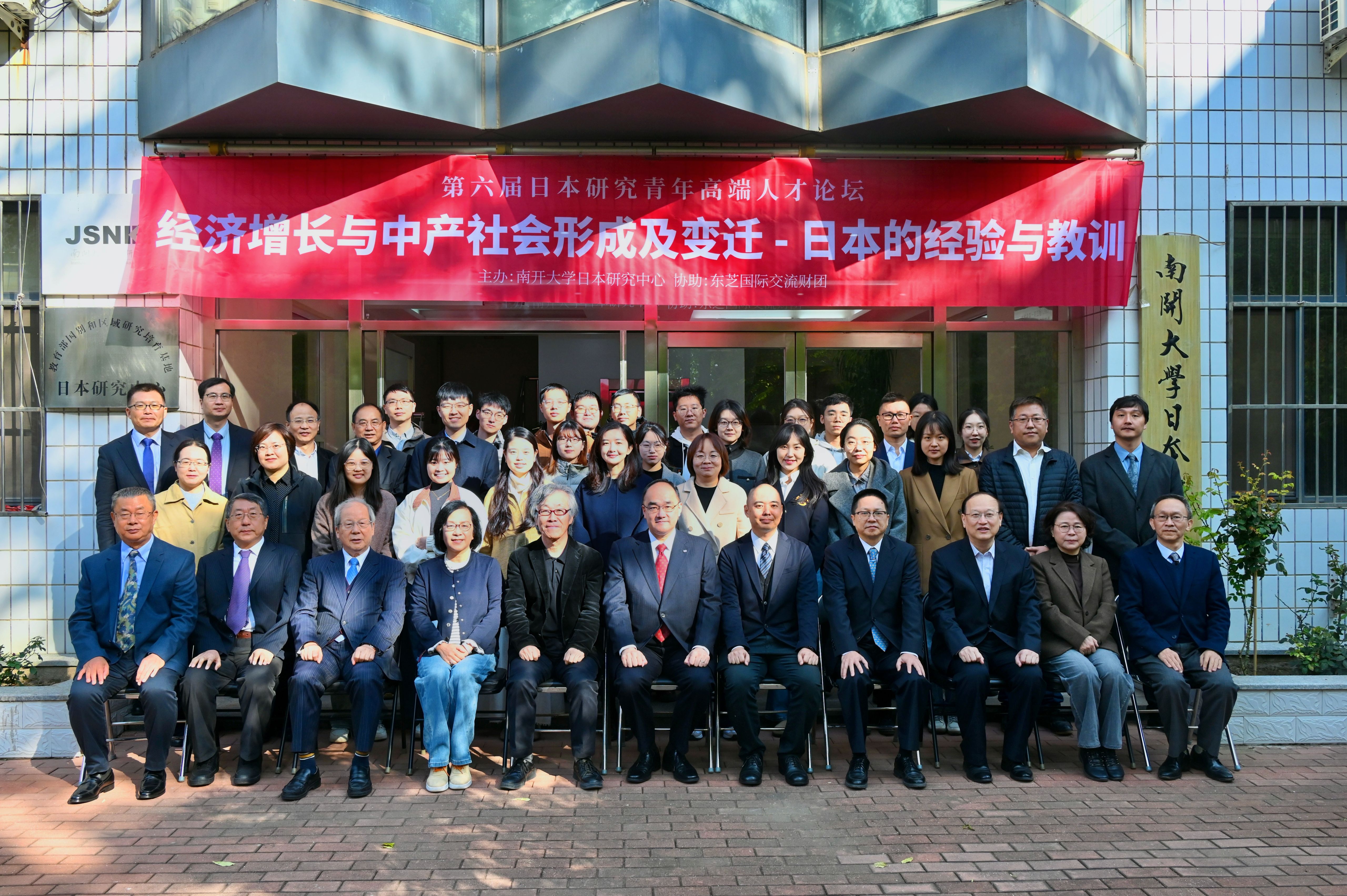 2025年10月19日,第六届日本研究青年高端人才论坛:经济增长与中产社会形成及其变迁——日本的经验与教训在天津南开大学日本研究院举办。来自东芝国际交流财团、日本国际交流基金会北京日本文化中心、南开大学、中国社会科学院、天津社会科学院、商务部研究院、京都大学、山梨学院大学、复旦大学、吉林大学、中央民族大学、辽宁大学、河北大学、河南师范大学、天津外国语大学等十余家单位的30余名专家与青年学者与会。